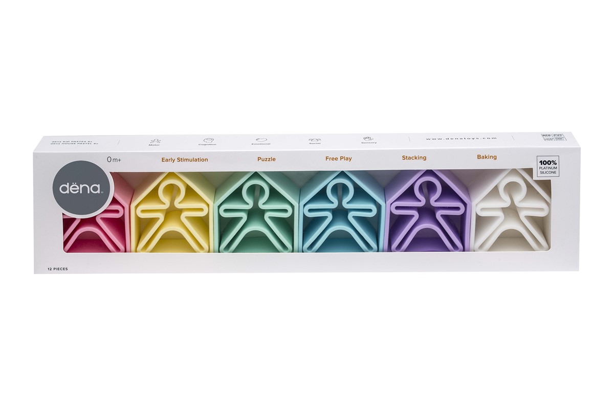El pack contiene 12 piezas: 6 piezas Dëna KID y 6 piezas Dëna HOUSE en colores pastel. Juguetes desestructurados que contribuyen a la estimulación de los bebés, al desarrollo de su imaginación y creatividad, y que ayudan al desarrollo de la motricidad fina.