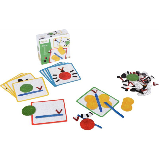 El juego contiene 59 piezas de cartón de 2,25 cm, 1 tablero vacío, 12 fichas modelo, 1 hoja de instrucciones.