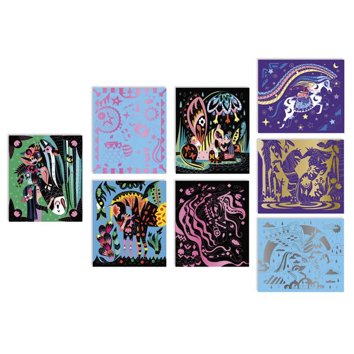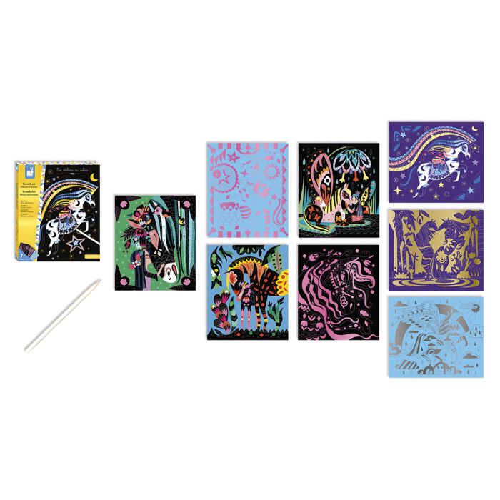 Relájate con ésta creativa actividad de rascado y observa como van apareciendo los vibrantes colores en la lámina. Se compone por 8 tarjetas para rascar, 1 herramienta de madera y 1 manual con modelos y instrucciones.