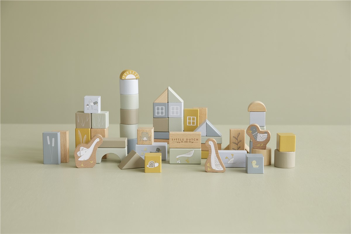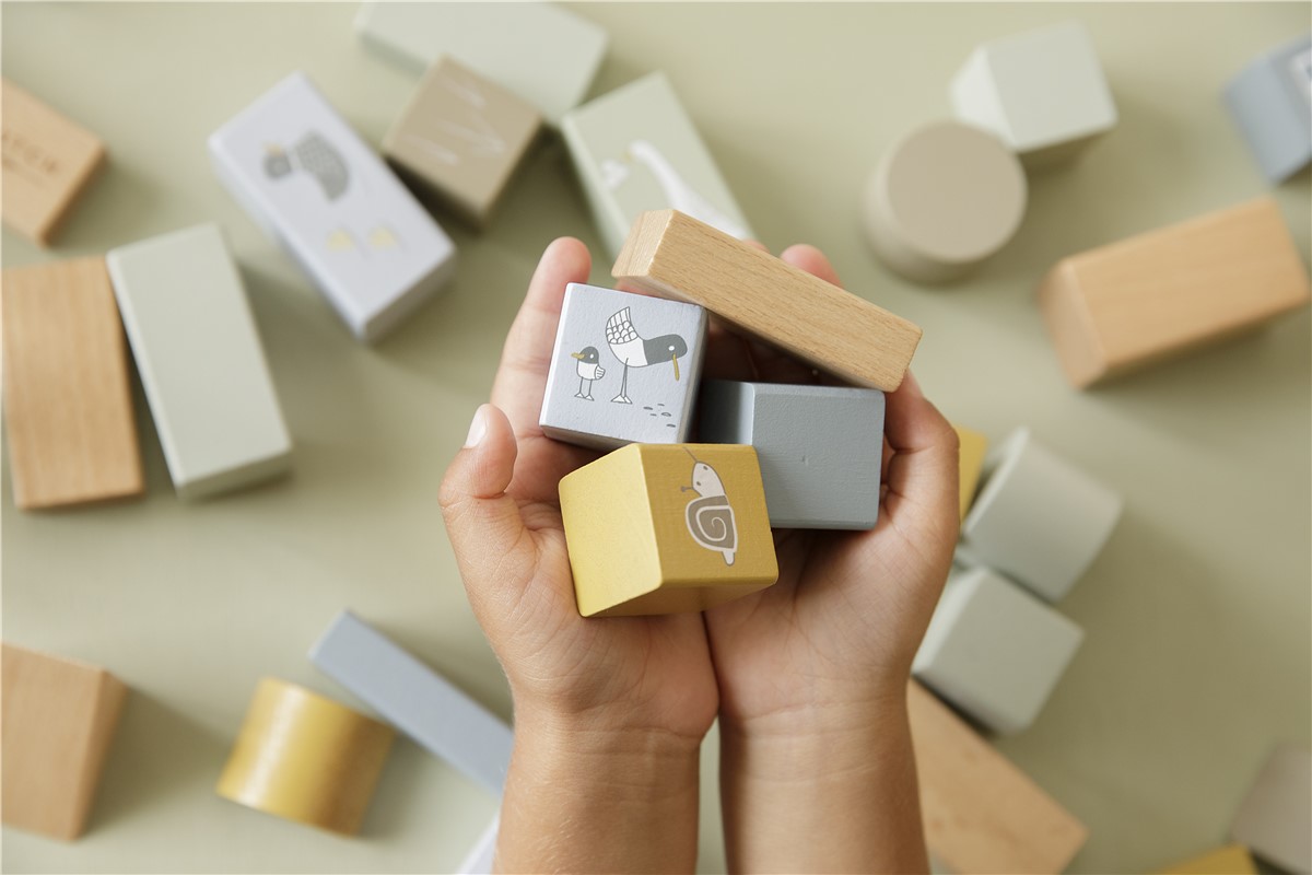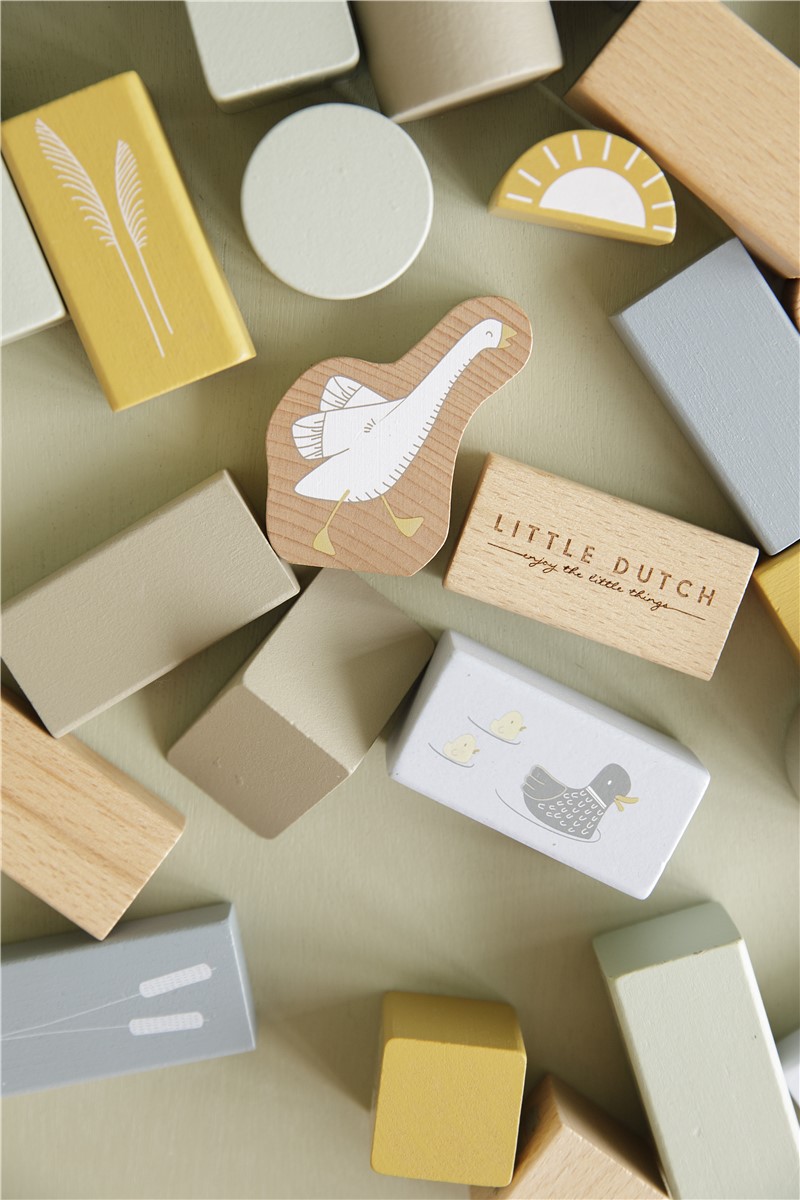 El cubo contiene 50 bloques de madera de varias formas y tamaños, decorados con nuestra oca y sus amigos del campo. Estimula su creatividad y motricidad apilando los bloques para construir divertidas formas o torres. Los bloques garantizan mucha diversión en la construcción y se pueden guardar sin esfuerzo en el cubo.