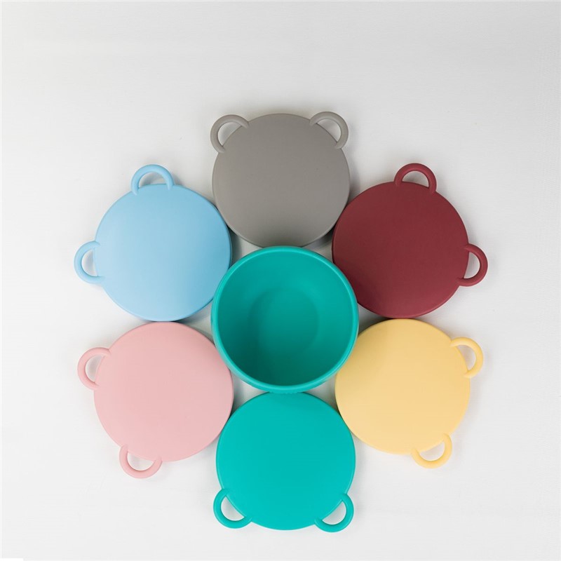 Bol de silicona con base de ventosa, que mantiene el recipiente de forma segura sobre la mesa. La tapa convierte el bol en un recipiente de almacenamiento. El bol es apto para horno y microondas hasta 200º C. Lavar a mano con agua tibia y jabón.