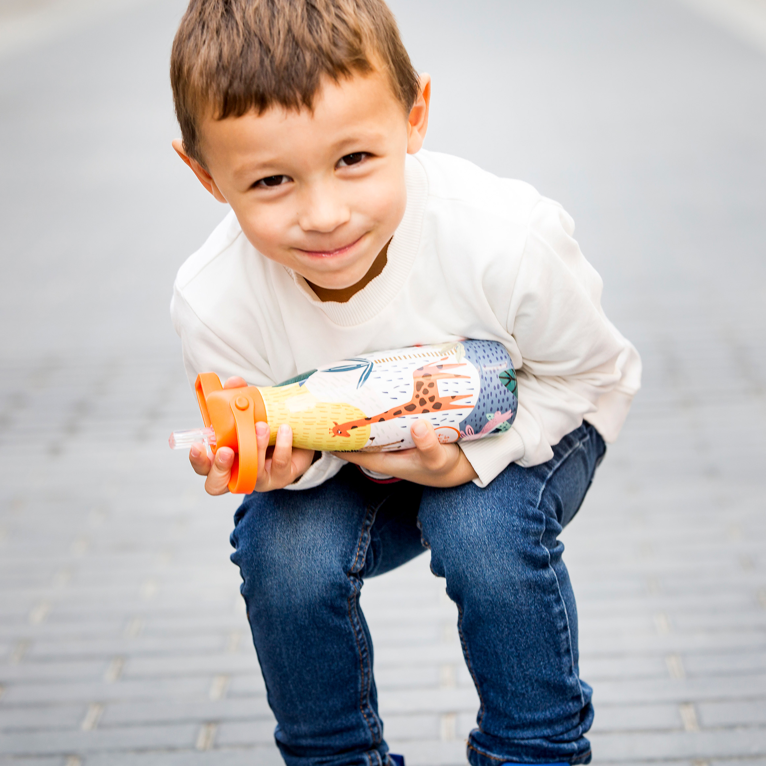 Texturas ilustradas que hacen de la Cool Bottles™ Kids una botella que marca la diferencia. Y además, mantiene su característica anti-deslizante con un acabado en pintura en polvo que la hace 100% resistente.