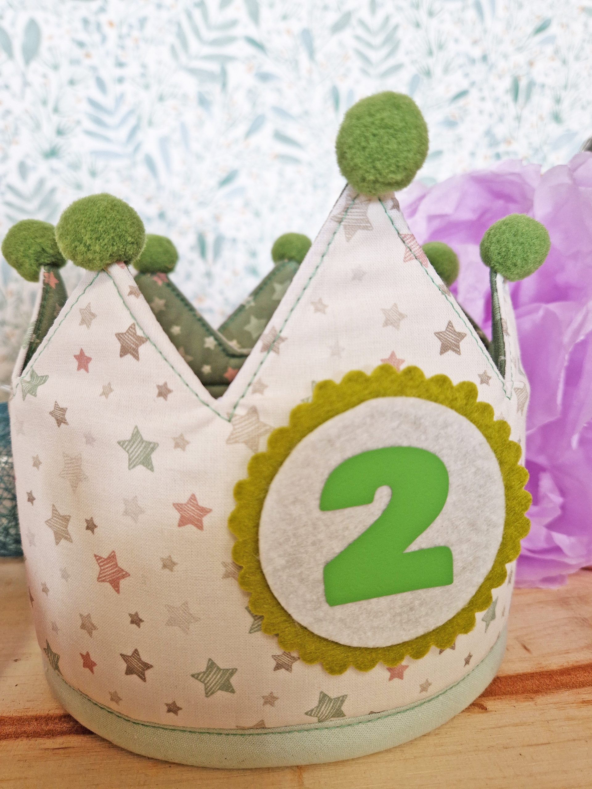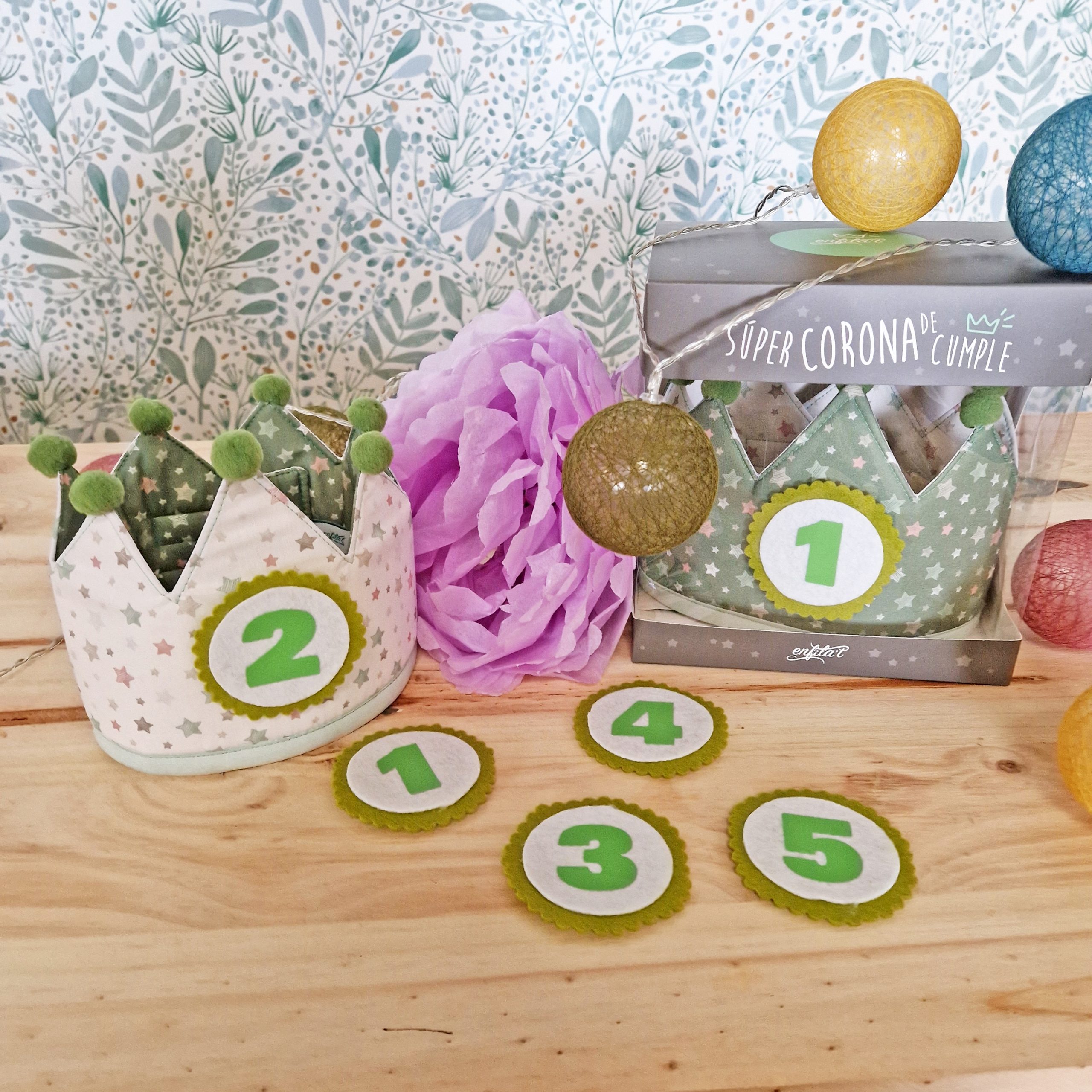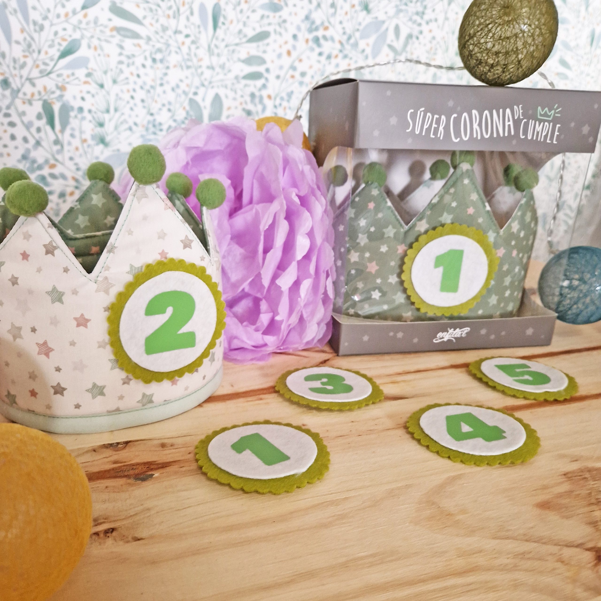 Estas coronas están realizadas a mano cuidando cada detalle, la corona es reversible con dos estampados, se ajusta mediante velcro, mide 58cmx16cm e incluye los números intercambiables del 1 al 5.