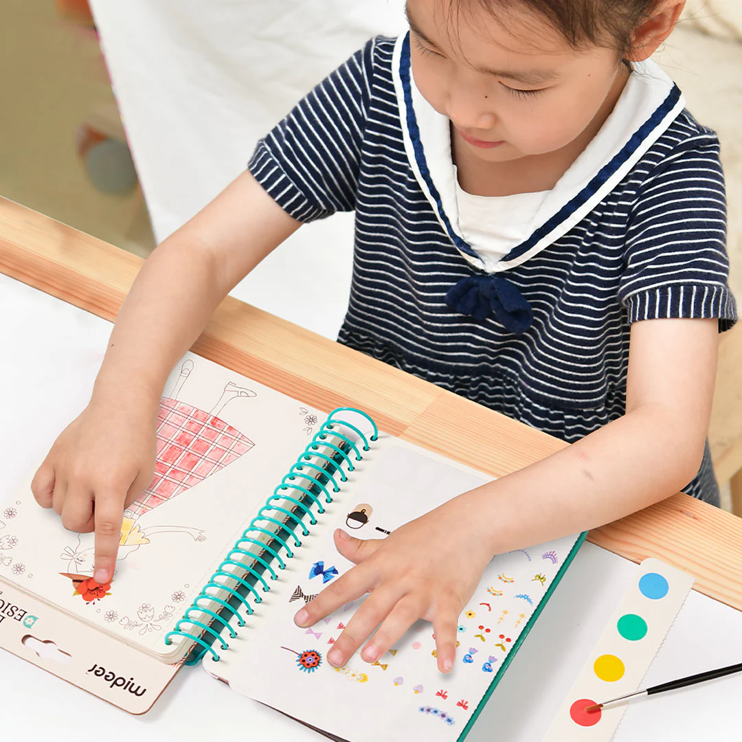 Contenido: Pincel, plantillas para colorear, pegatinas, patrones de ropa recortados, materiales para decoración, pigmentos de varios colores.