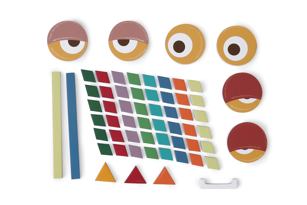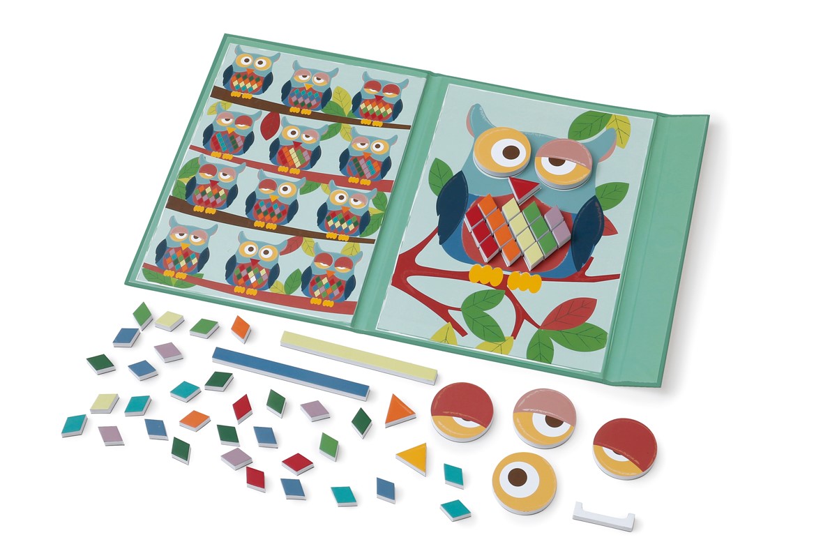 Álbum magnético para trabajar el pensamiento lógico. Compuesto por una misma silueta, 12 imágenes diferentes y varios elementos magnéticos con los que los niños trabajarán la concentración para distinguir los colores, buscar y encontrar la posición adecuada en cada imagen.