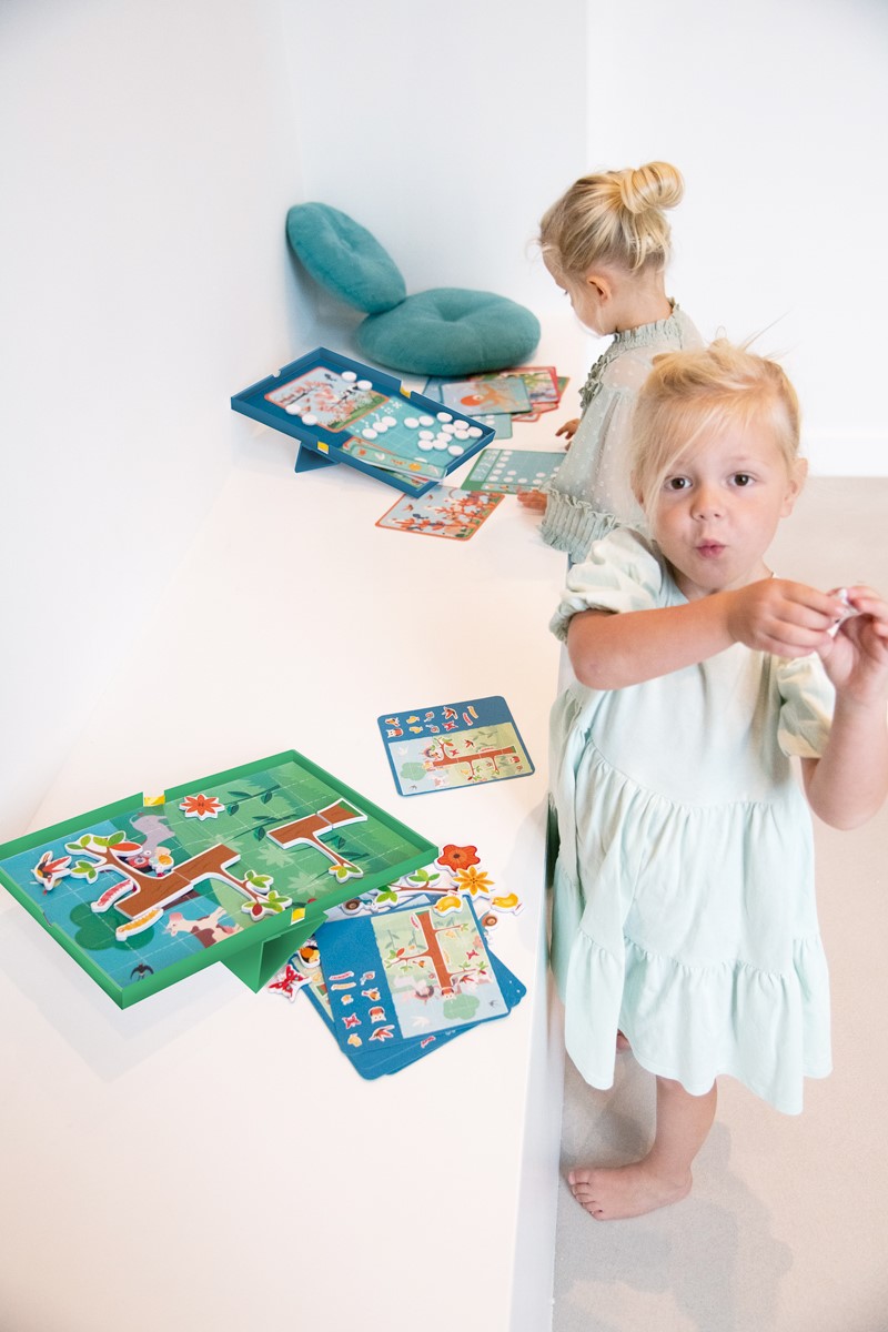 Diversión en la granja. Juego magnético con 20 desafíos y 2 nieveles.Toma una tarjeta de tareas y recrea la escena con los animales, flores y árboles magnéticos. Deja volar tu imaginación y crea tu propia historia.Juegos educativos que tu hijo puede jugar solo. Las soluciones a las tareas se pueden encontrar en una tarjeta de soluciones, para que los niños también puedan comprobarlas ellos mismos.