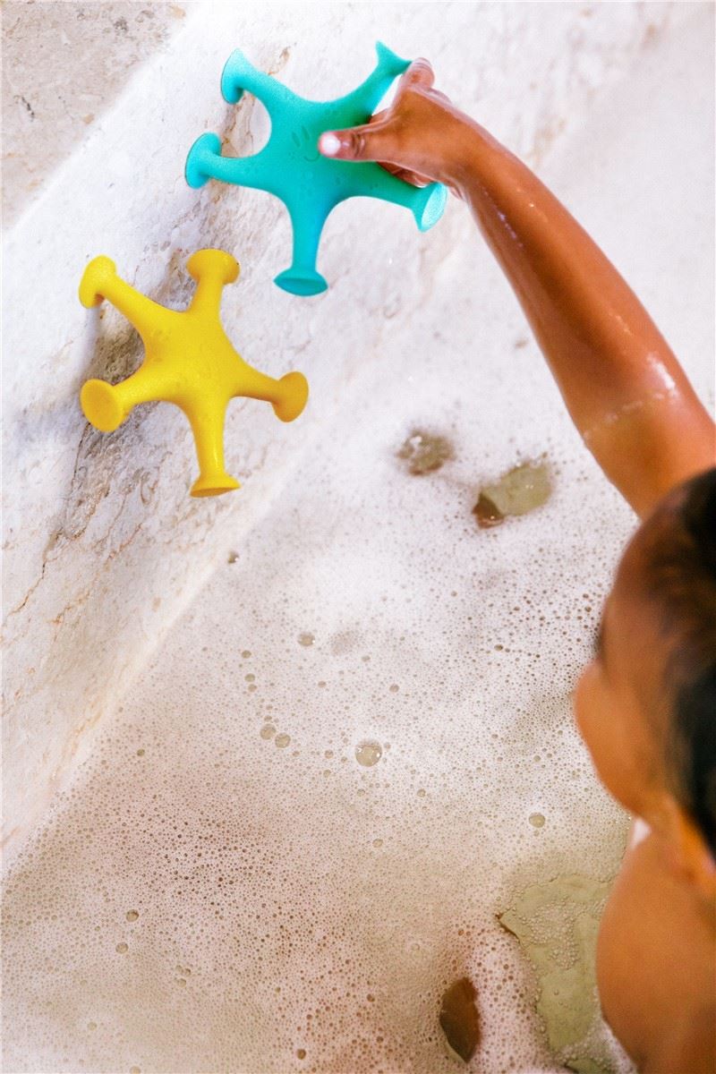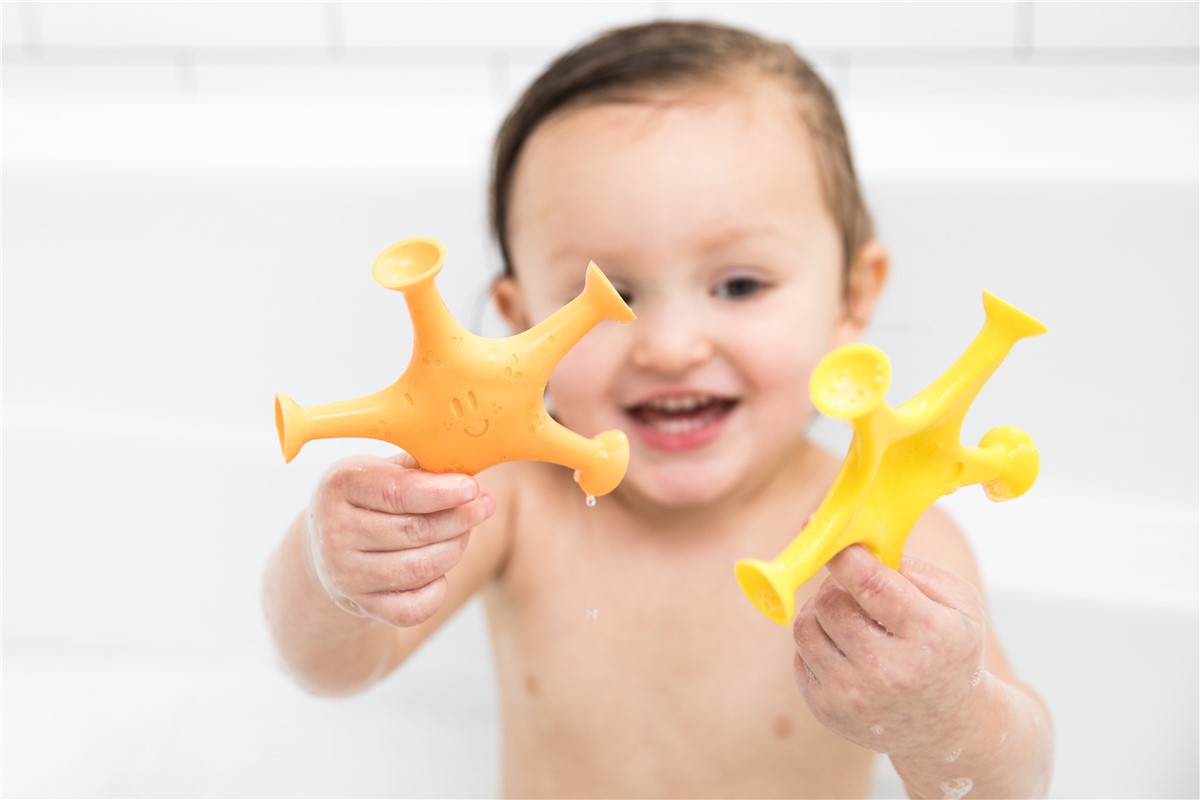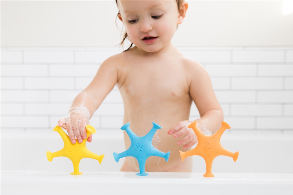 Puedes pegarlas a la bañera, estirarlas y también se mantienen de pie.Resistentes y seguras para los niños. Apto para lavavajillas.