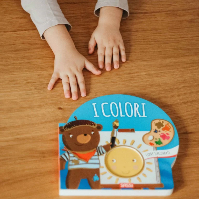 Este libro infantil de cartón duro está diseñado para ayudar a los niños a descubrir y aprender los colores de forma sencilla y divertida.