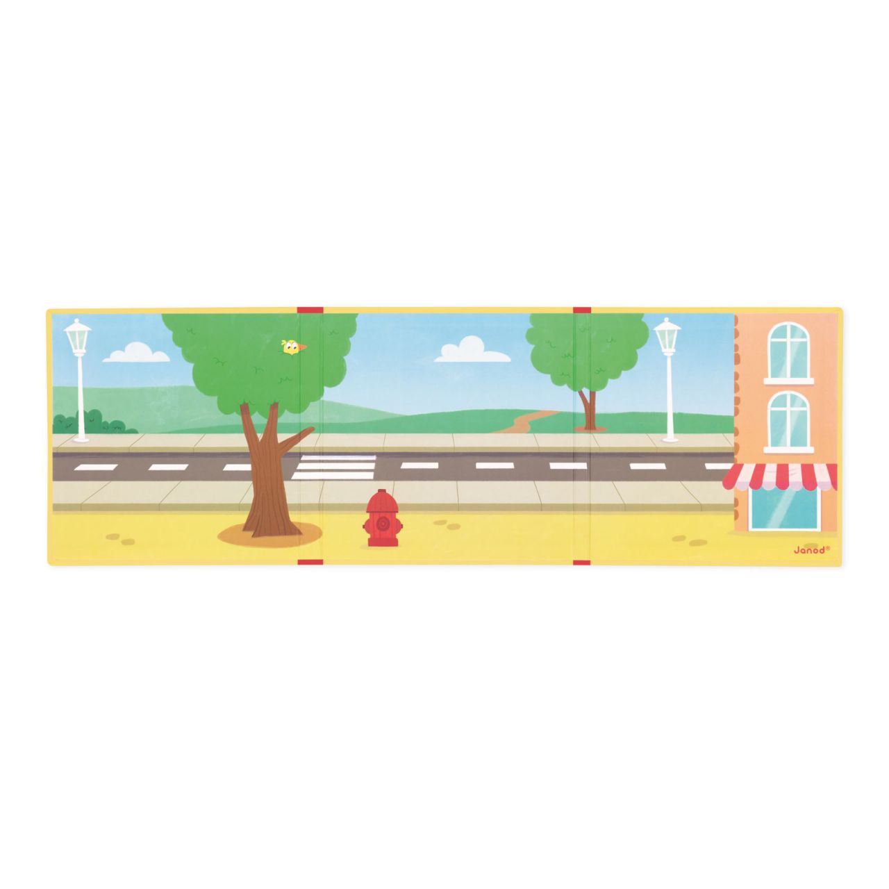 ¡El gatito empezará a maullar y la pequeña al final se secará las lágrimas gracias a la intervención de los bomberos! Este decorado grande es plegable, lo que lo hace fácilmente transportable. Una vez metido en la mochila o en el coche, ya no habrá barreras para la imaginación del aprendiz de bombero. Cuando haya puesto los imanes en el soporte y haya preparado cuidadosamente la historia, el niño estará encantado de poner la escena en vertical para contártela.