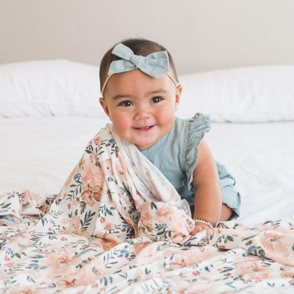 Además, los encantadores estampados de esta mantita harán que quieras usarla como fular.