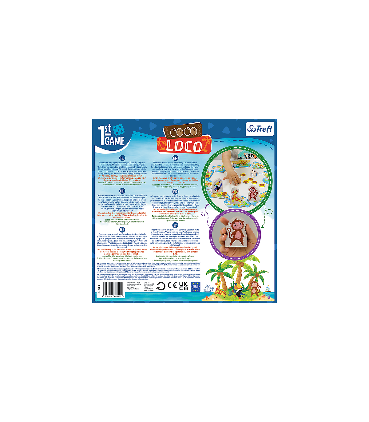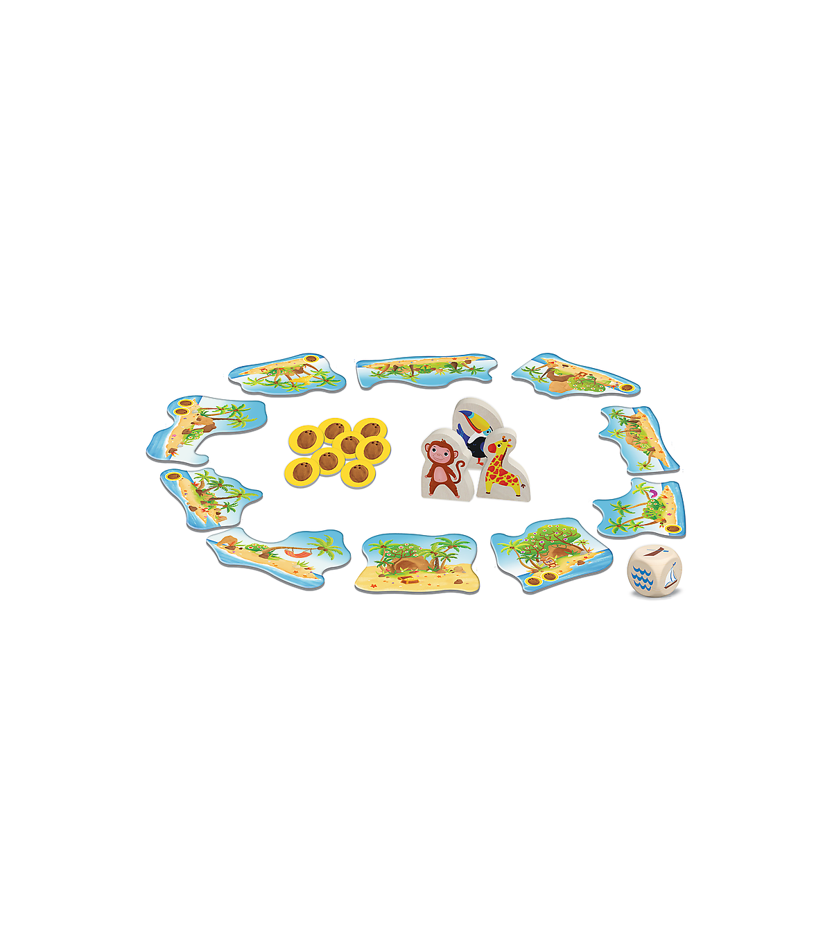 Conoce a nuestros amigos: Coco el monito, Loco la Jirafa y Tuko el tucán y ayúdales a trasladar todos los cocos de su isla antes de que llegue la enorme ola y !quede inundada!”