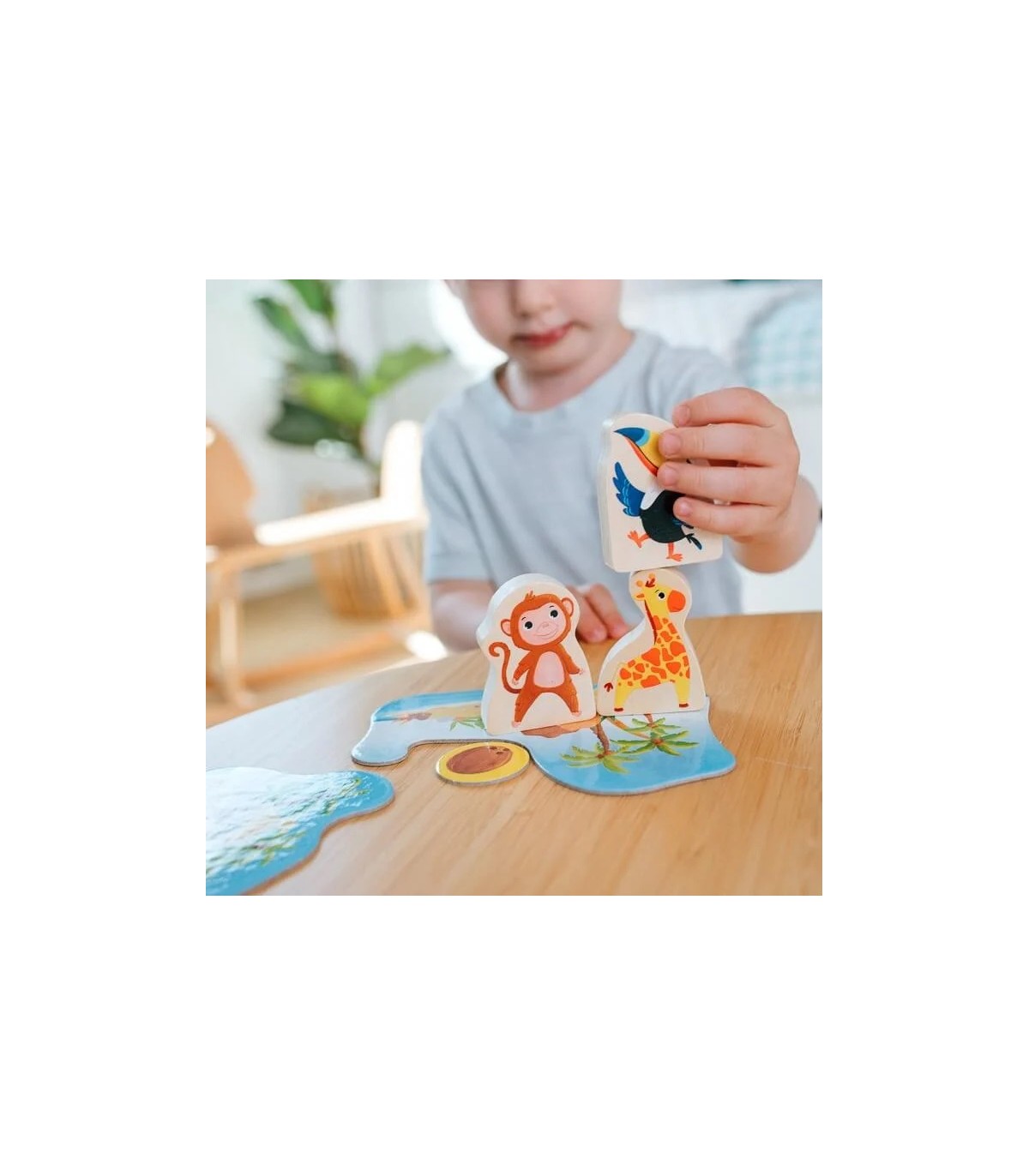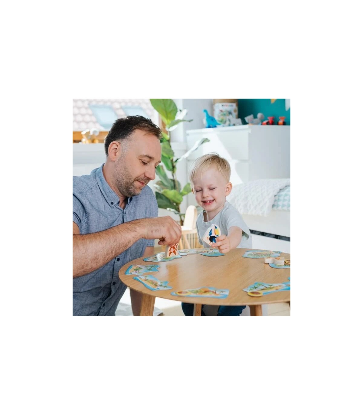 Sus sencillas reglas, llamativas ilustraciones y grandes piezas de madera hacen que este juego sea ideal para primeros jugadores a partir de 2 años y medio de edad.