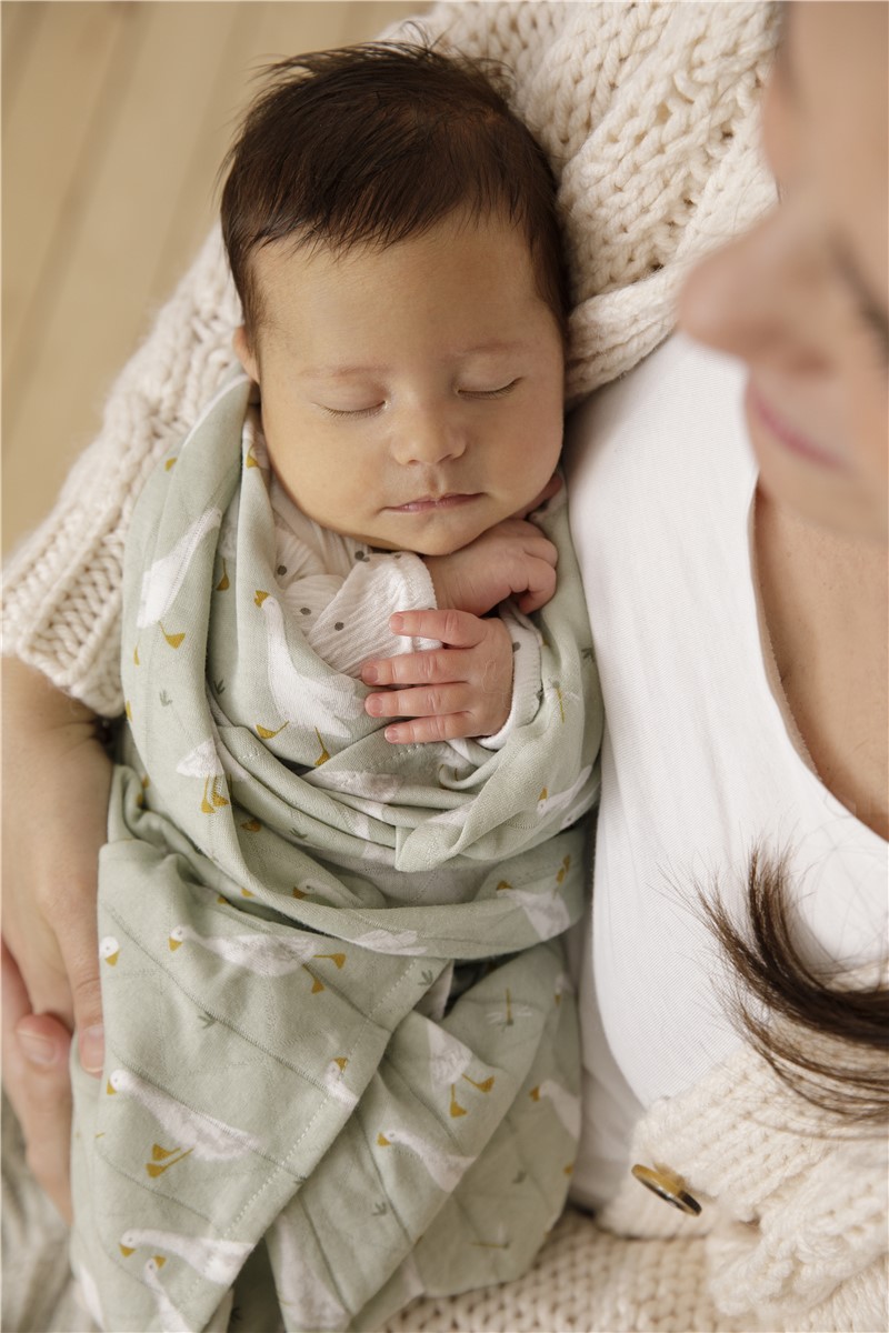 La muselina de 120 x 120 cm es una tela absorbente multifuncional y una prenda imprescindible para su hijo. Está hecha de suave algodón con una alta capacidad de absorción. Ideal para secar a su hijo después de bañarse, como una funda para cambiarse durante el cambio de pañales o como un paño.Lavable a máquina. 100% algodón.