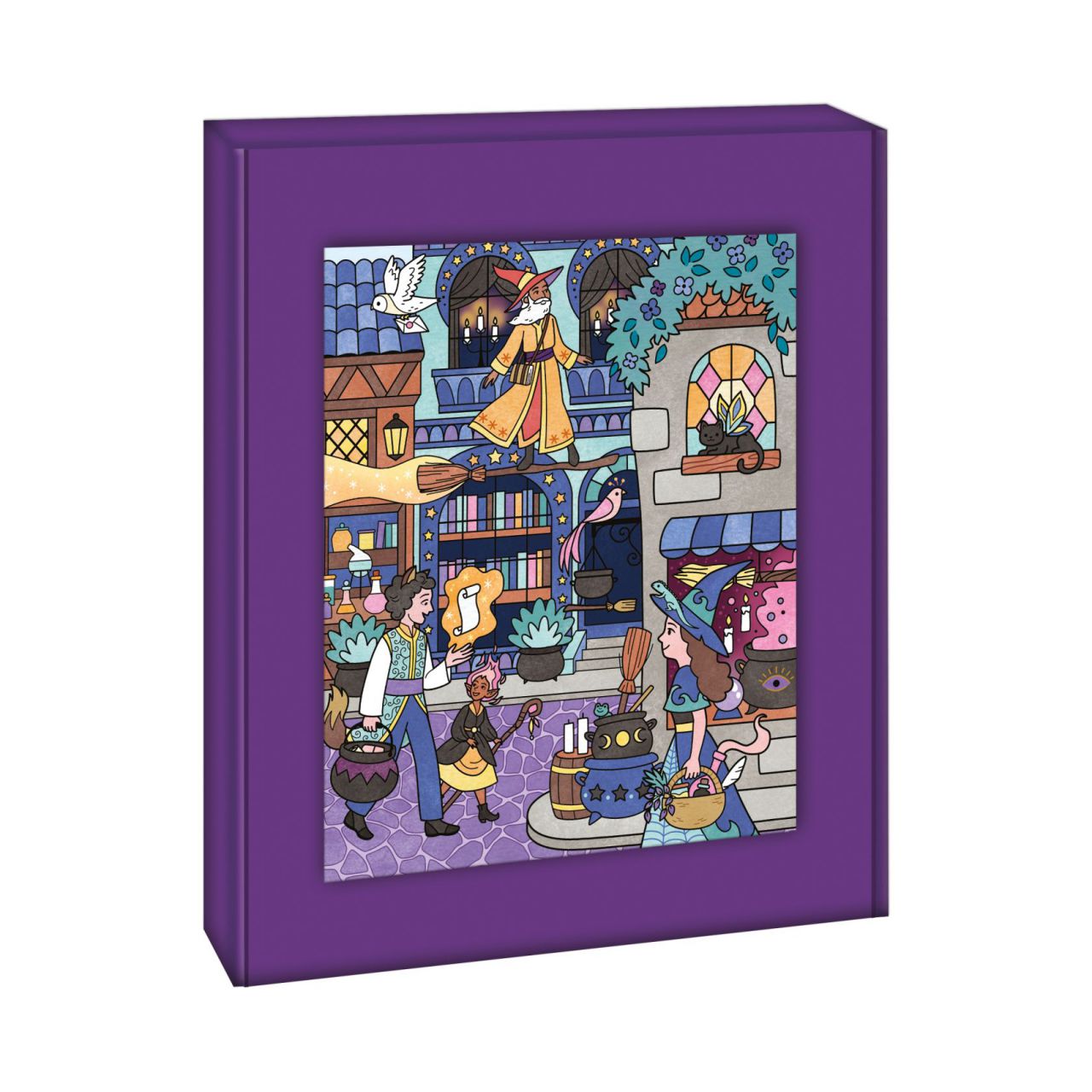 ¡Conviértete en un auténtico pintor! Esta caja creativa permite crear 4 cuadros con líneas brillantes, zonas ya coloreadas con purpurina y zonas para pintar con una paleta de acuarela y 1 pincel con depósito de agua sobre la temática de los brujos.