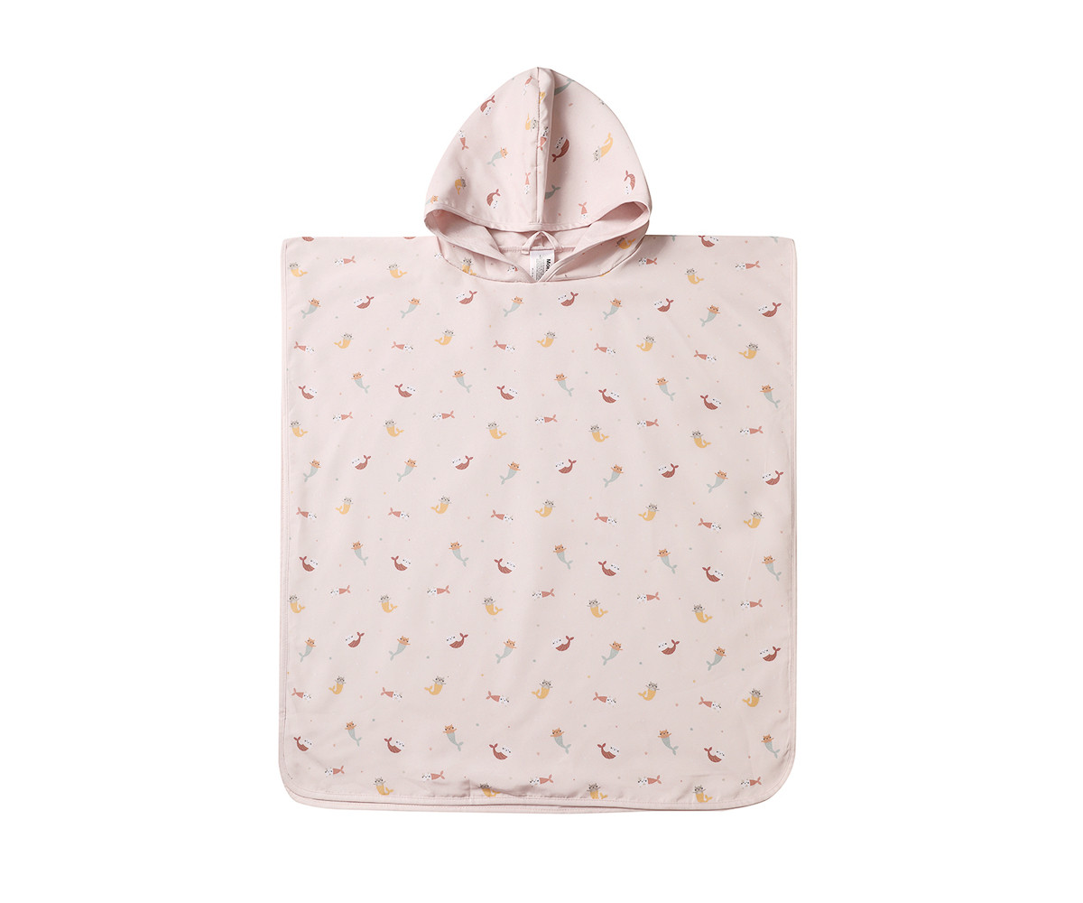 El poncho con capucha de la colección verano 2026 de Monnëka es una prenda práctica y cómoda para secar y abrigar a los más pequeños después del baño en la playa o la piscina.