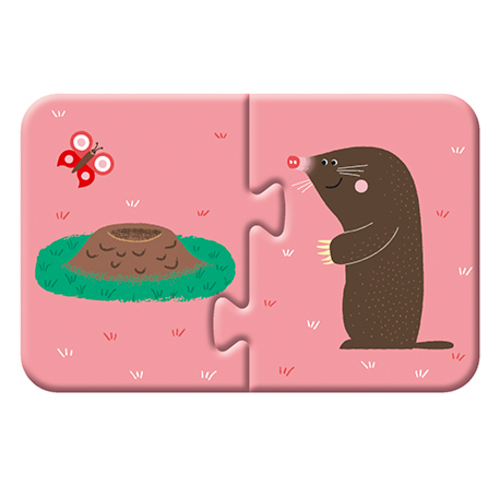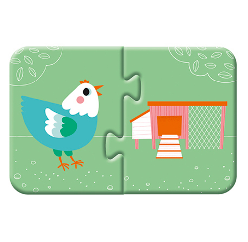 ¿Dónde viven los topos? ¿y las gallinas? Aprende a asociar cada animal con su hábitat mientras se divierte encajando las piezas de éste sencillo puzzle, ideal para niños a partir de 2 años.