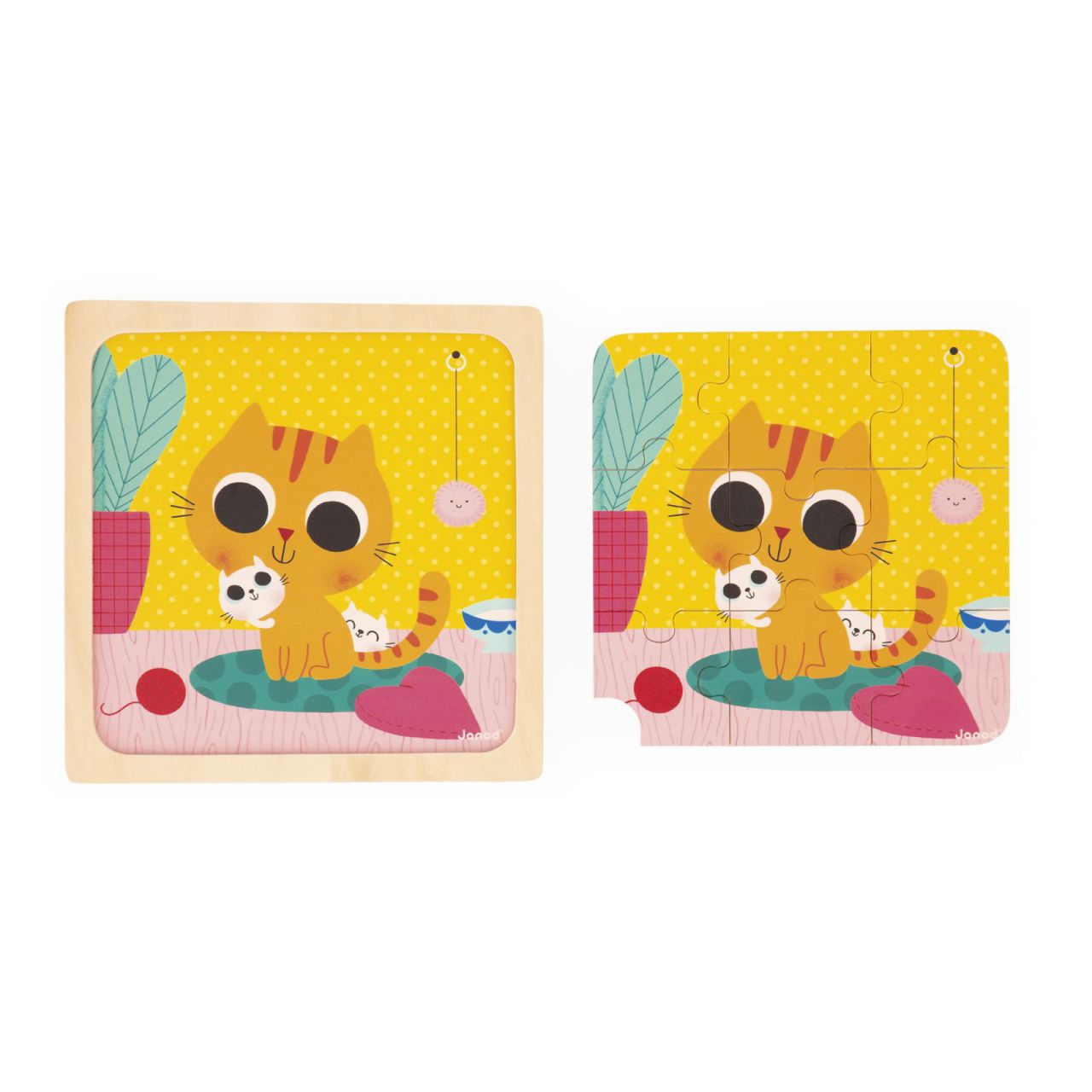 Cada puzle está compuesto por 9 piezas y una muesca que facilita la extracción de las piezas. Debajo de cada puzle, hay un modelo impreso ideal para ayudar a los más pequeños.