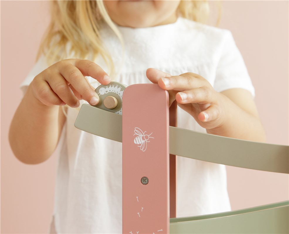 1, 2, 3 y ¡a correr! Con esta rampa de carreras de madera floral que incluye 4 ruedas decoradas, tu pequeño se lo pasará en grande. Coloque el escarabajo, la oruga, el caracol y la flor uno por uno en la parte superior de la pista de carreras, déjelos ir y correrán hacia abajo. ¡A los niños les encanta!