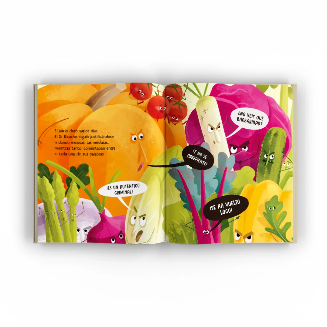Las verduras son muy buenas. Excepto cuando se enojan. Y nada las enfurece más que la fábrica de las cosas inútiles. Un lugar que emite humo púrpura y contamina el agua, haciendo que el suelo del que se nutren las verduras sea poco saludable. El responsable es solo uno: el señor Ricacho, que controla los engranajes de su fortaleza de acero. Pero el Frente Revolucionario Vegetal está dispuesto a darle una buena lección…
